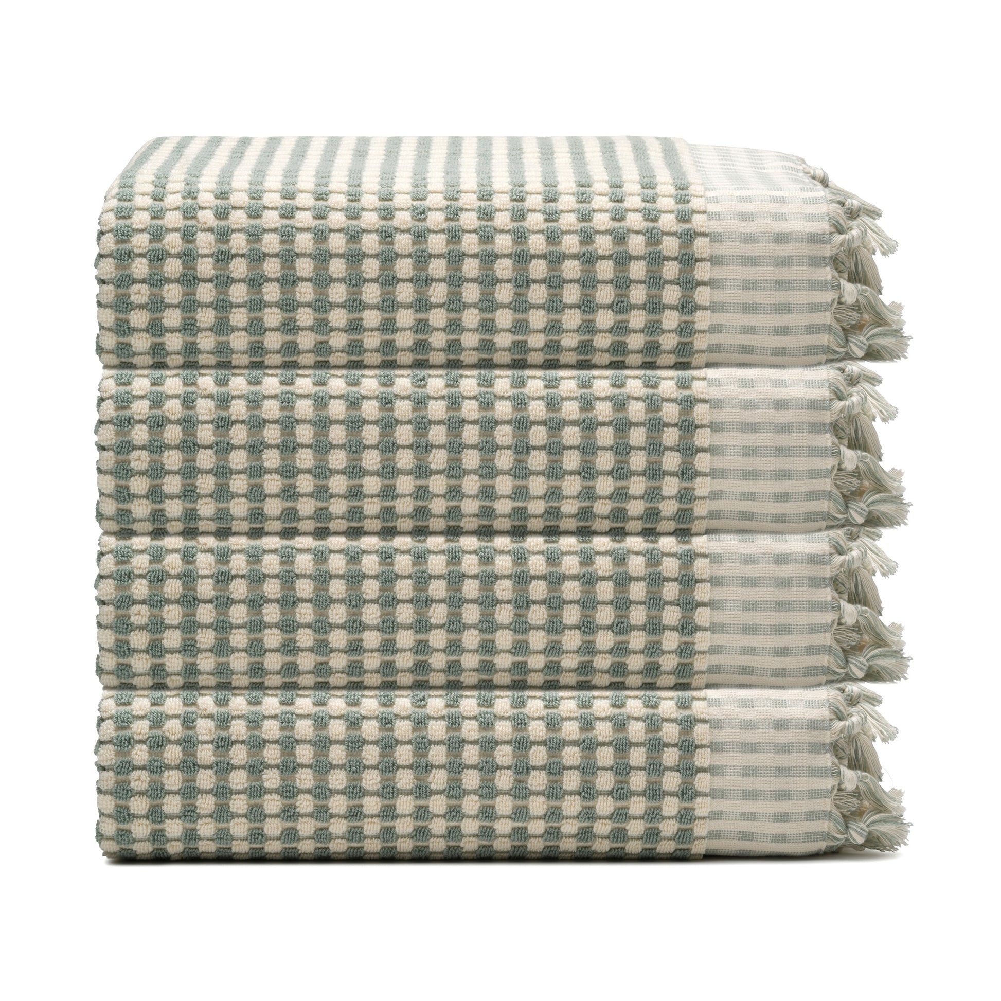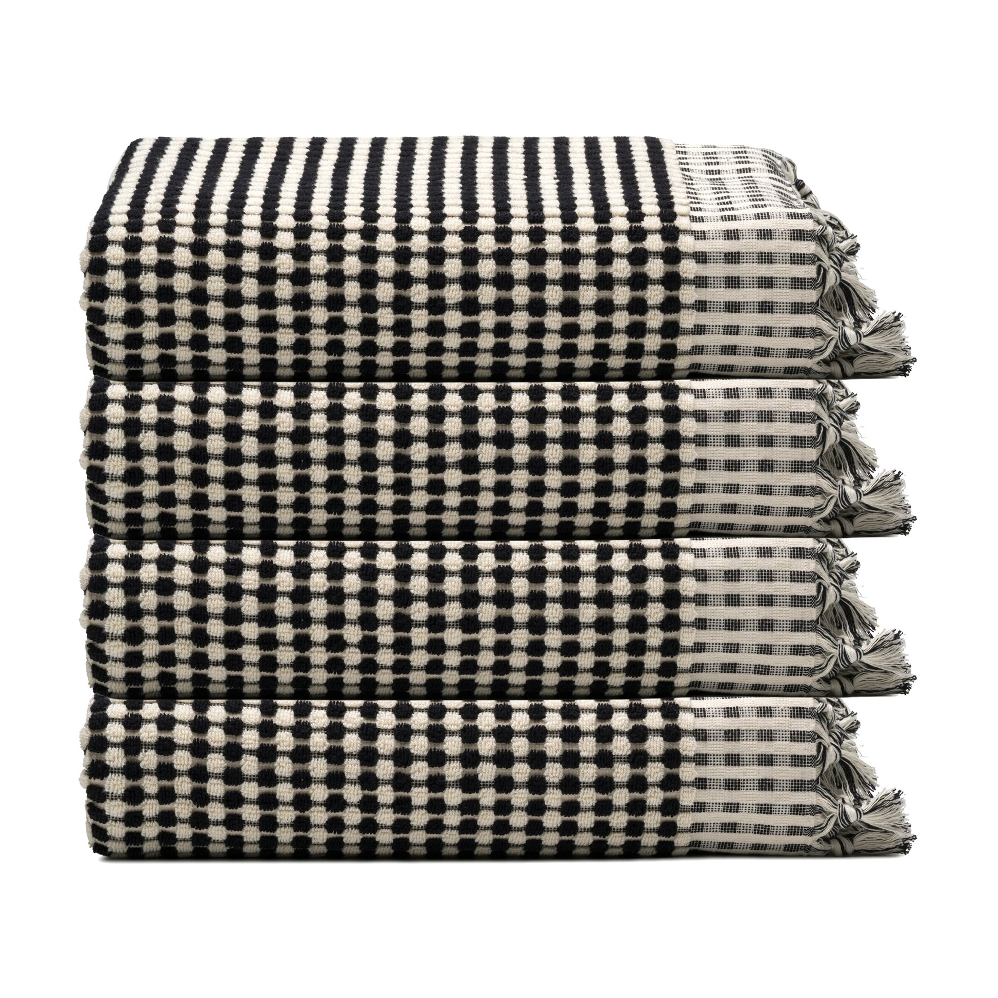 Premium Turkish cotton towels with a soft, plush texture and excellent absorbency. Hand-loomed from 100% quality cotton, these weighted towels feature charming dot patterns in vibrant colors or classic black and white. OEKO-TEX® certified, they're made without harmful chemicals or dyes, making them a responsible choice for your home and the environment.